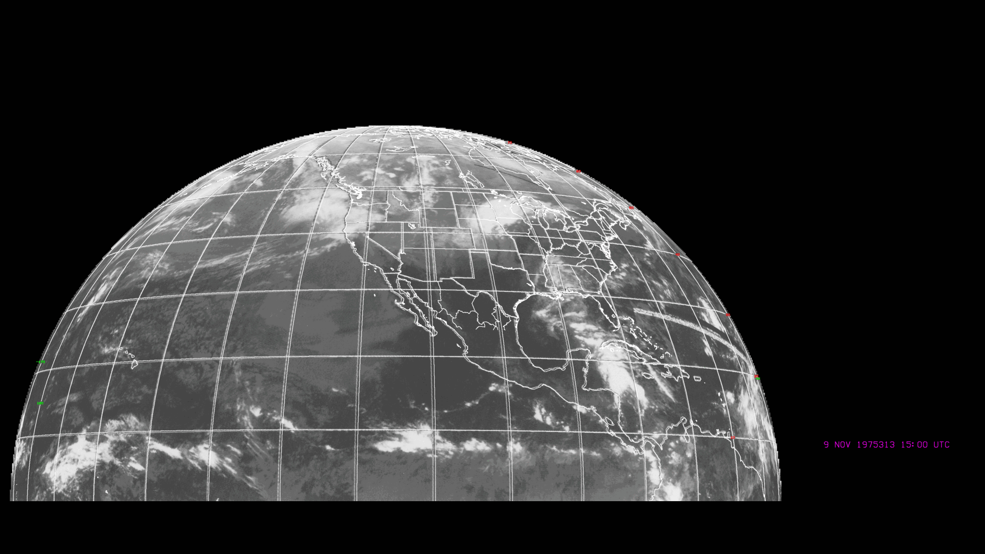 The Synchronous Meteorology Satellite (SMS) series of satellites was the precursor to the venerable GOES satellite series that has been serving our society for 50 years. SMS was designed to follow the experimental Applications Technology Satellite (ATS) series, which was the first to demonstrate the utility of geostationary satellites. The ATS satellites were primarily designed for communications needs, but they carried some meteorology equipment on board. By contrast, the SMS satellites were designed from the ground up to support meteorology needs and thus represented the United States of America’s first dedicated geostationary meteorology satellites. A handful of images from the SMS era have survived, including from November of 1975.